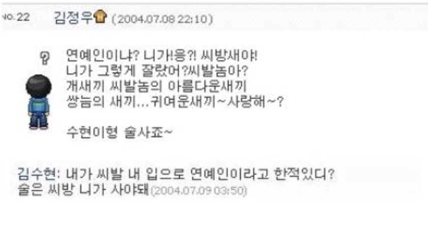 또한 욕설이 난무하는 내용들이 대다수였는데요. 지고지순하고 더불어 순박하기까지한 이미지의 김수현의 이런 모습에 많은 팬들은 놀라기도 했습니다